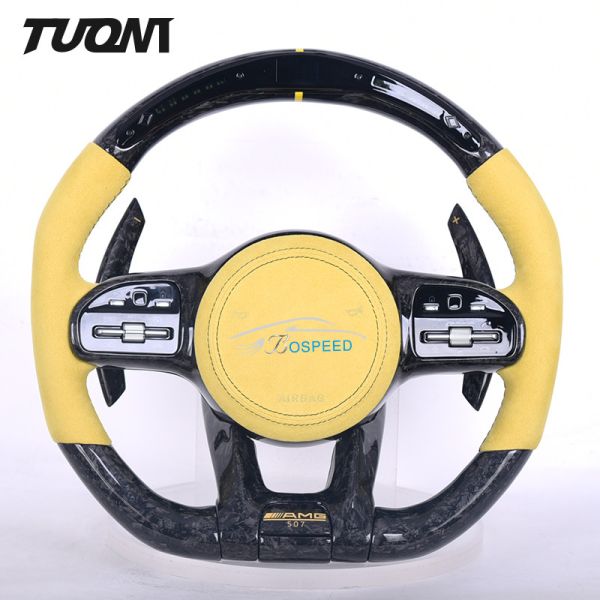 Yellow Suede Leather Mercedes Benz Steering Wheel Forged Carbon Fiber With LED Images |